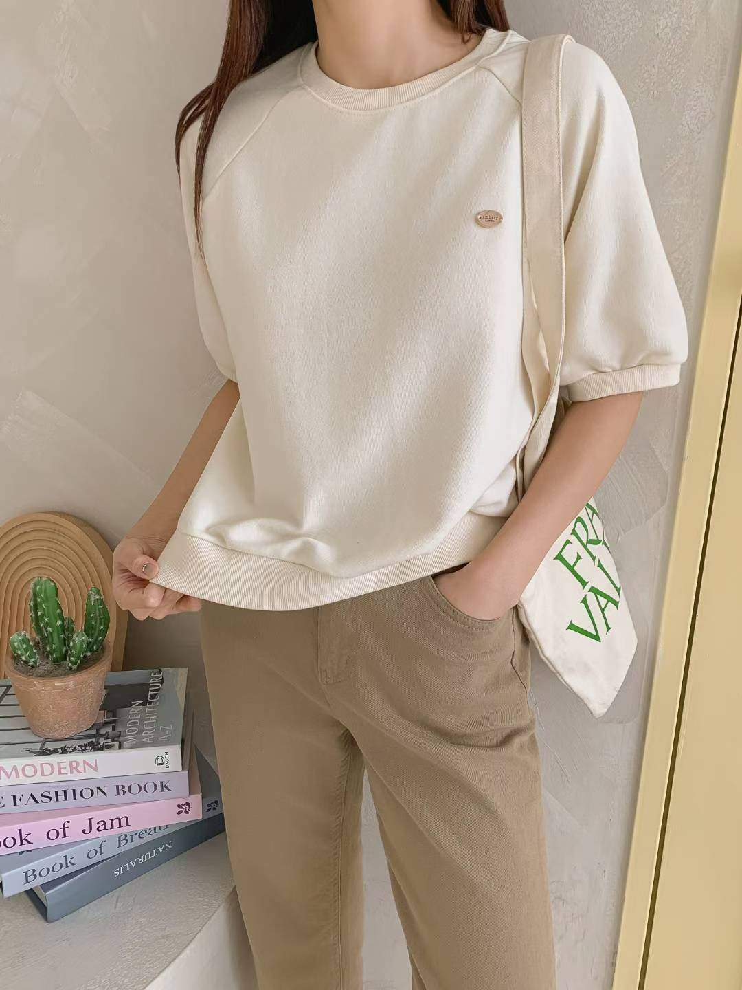 Forever Kids 正韓 金屬小標實穿四色T衛衣【A69391】韓國代購 | Foreverkids 韓國時尚精品、韓國代購、正韓空運、洋裝、吊帶褲、外套、針織外套、寬褲