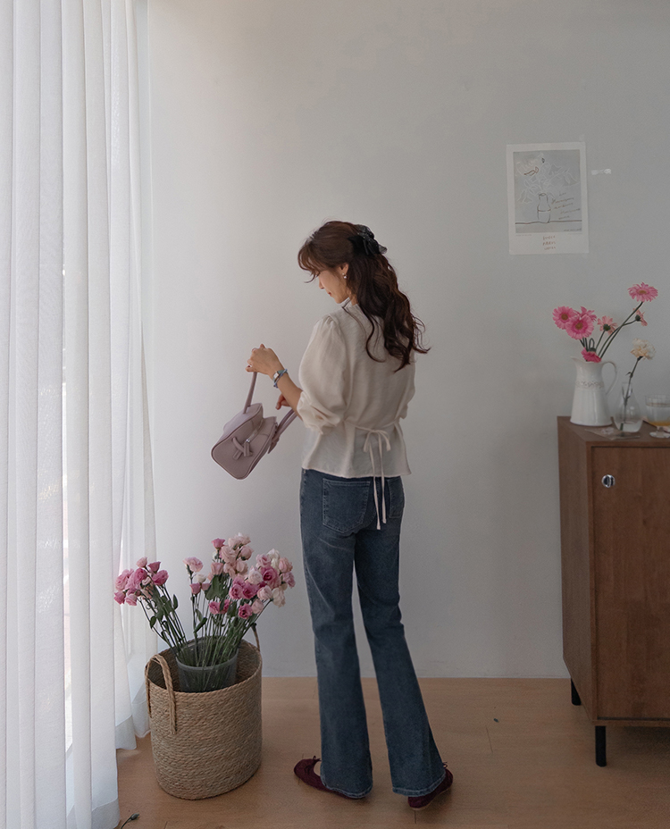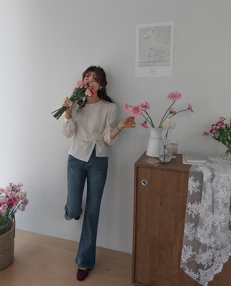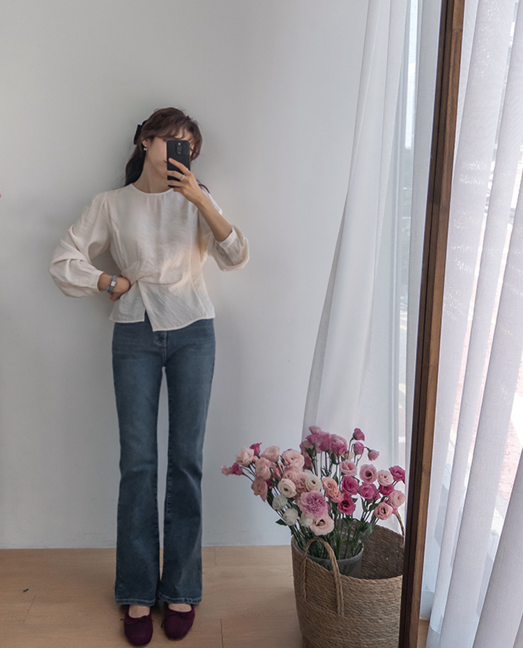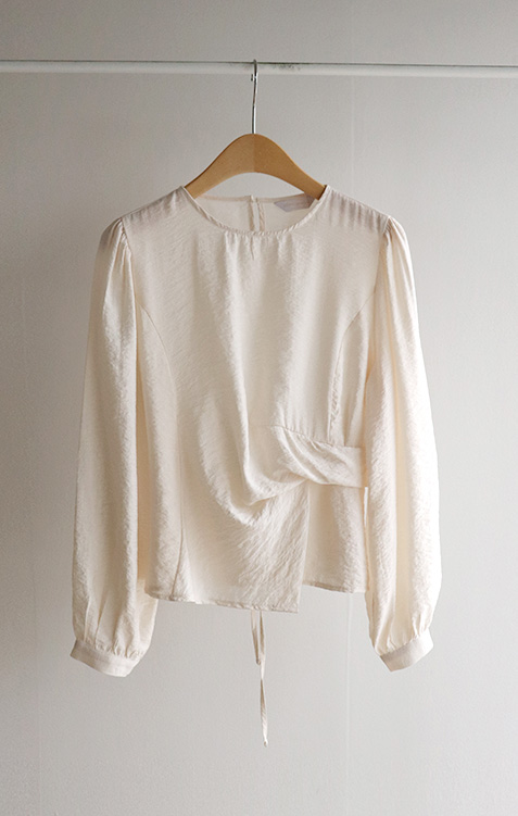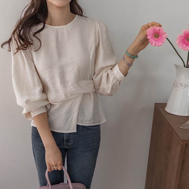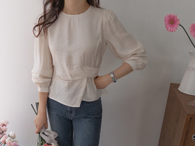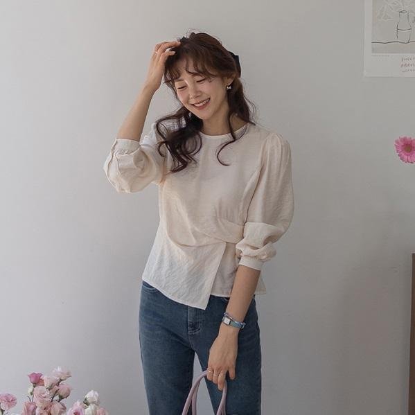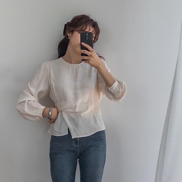 Forever Kids 正韓 優雅垂墜輕盈側抓褶 微泡泡袖襯衫【S69338】 | Foreverkids 韓國時尚精品、韓國代購、正韓空運、洋裝、吊帶褲、外套、針織外套、寬褲