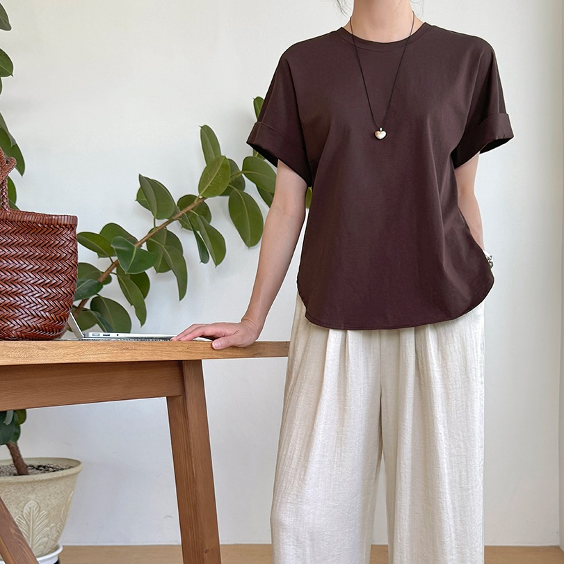 Forever Kids 正韓 柔軟光滑側開岔純色T上衣【A60407】