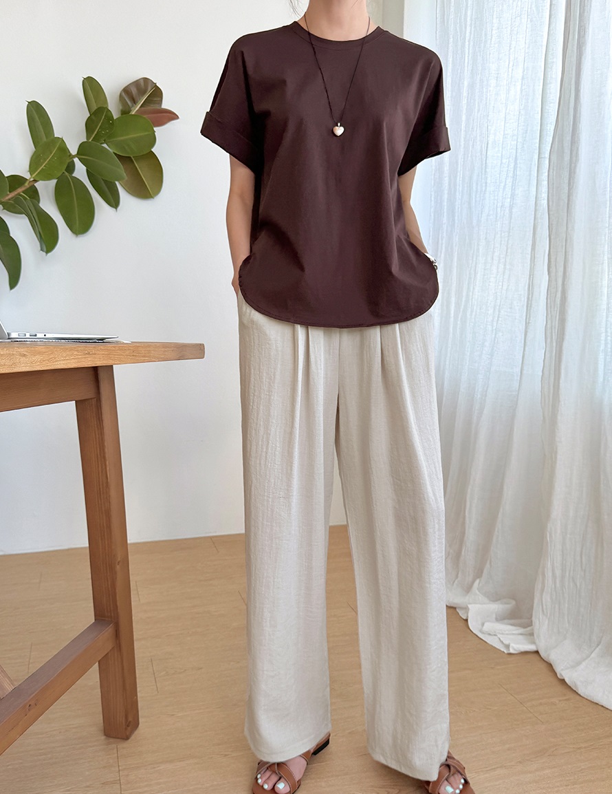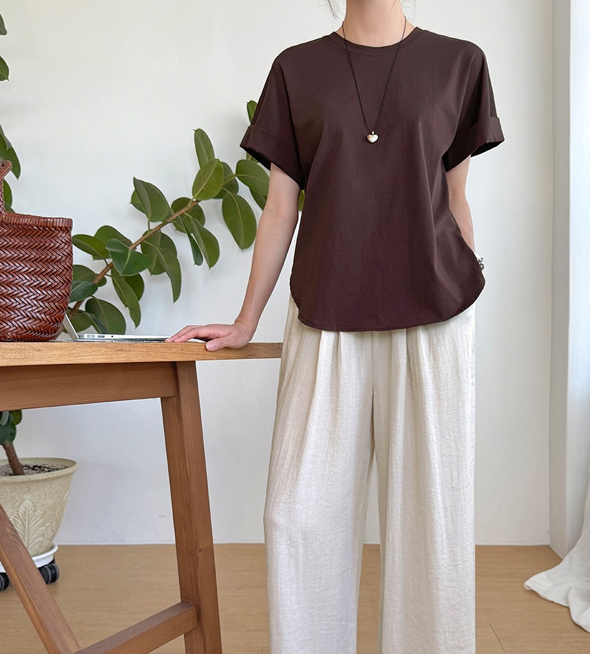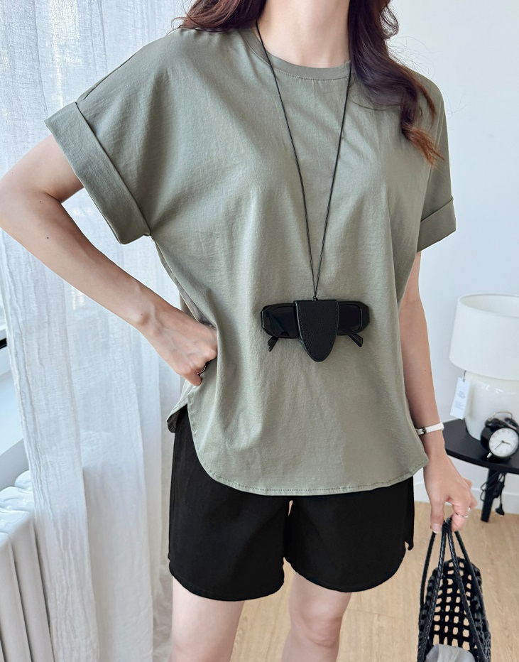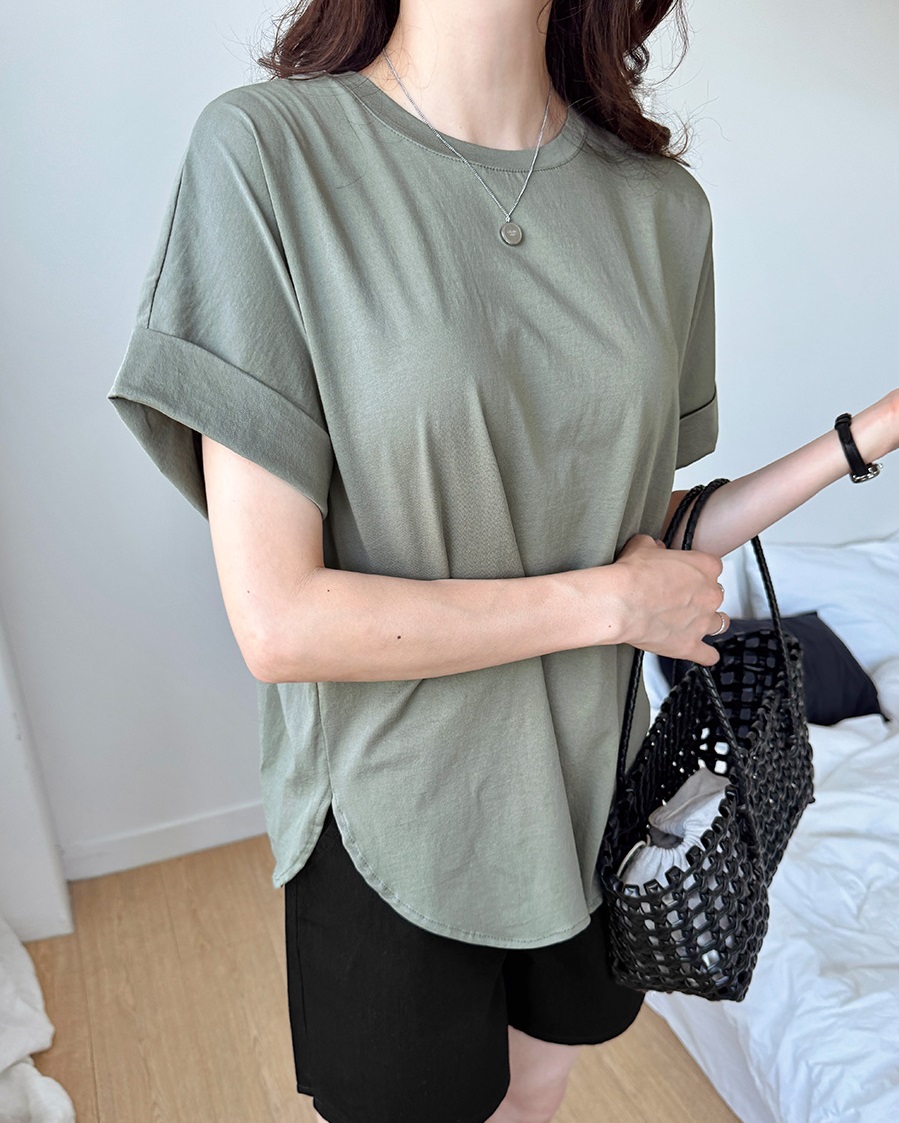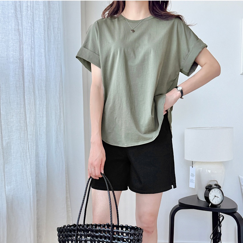 Forever Kids 正韓 柔軟光滑側開岔純色T上衣【A60407】 | Foreverkids 韓國時尚精品、韓國代購、正韓空運、洋裝、吊帶褲、外套、針織外套、寬褲