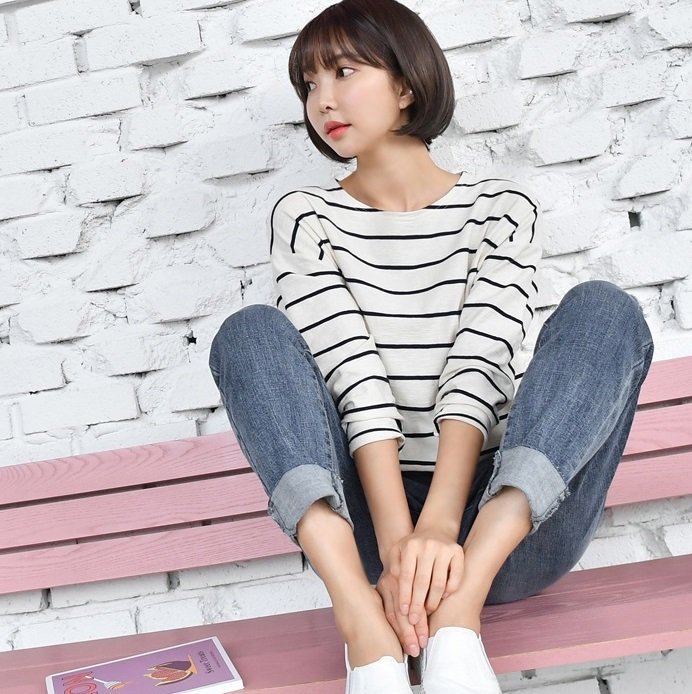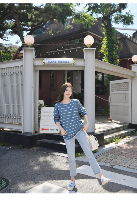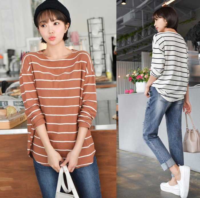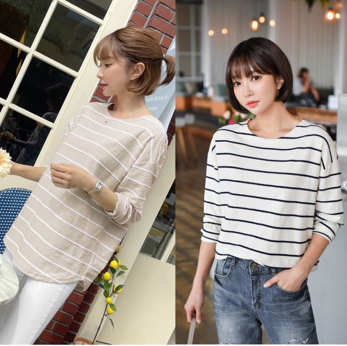 Forever Kids 正韓 好搭!實穿好版型條紋圓弧下擺T【R20221】韓國代購 | Foreverkids 韓國時尚精品、韓國代購、正韓空運、洋裝、吊帶褲、外套、針織外套、寬褲