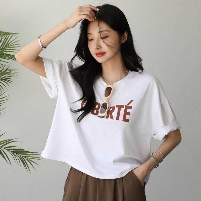 Forever Kids 正韓 好版型落肩 寬鬆半短棉T上衣【K69335】韓國代購 | Foreverkids 韓國時尚精品、韓國代購、正韓空運、洋裝、吊帶褲、外套、針織外套、寬褲