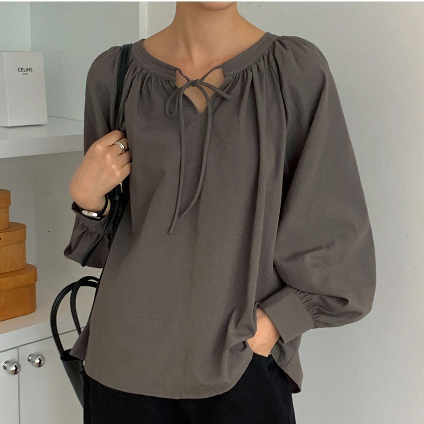 Forever Kids 正韓 繫帶泡泡袖 抓皺寬鬆襯衫【A60371】韓國代購 | Foreverkids 韓國時尚精品、韓國代購、正韓空運、洋裝、吊帶褲、外套、針織外套、寬褲