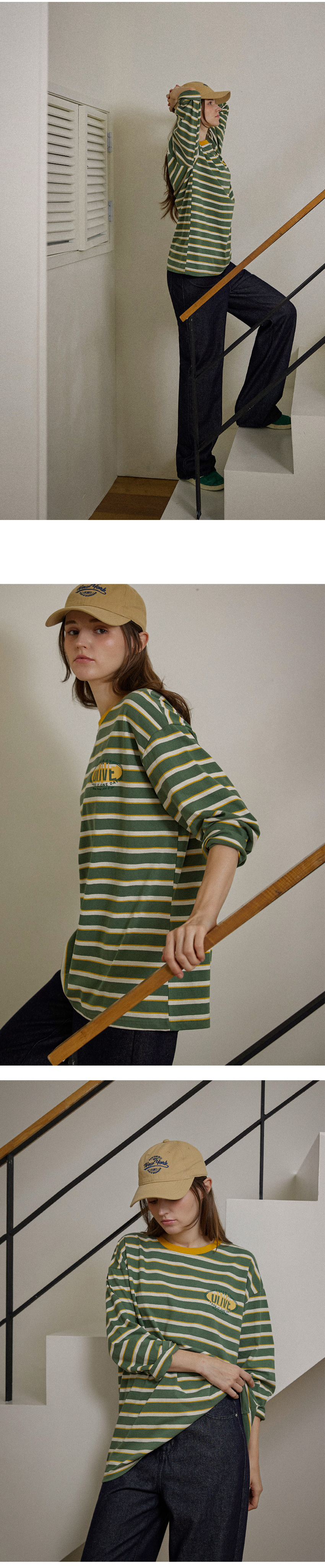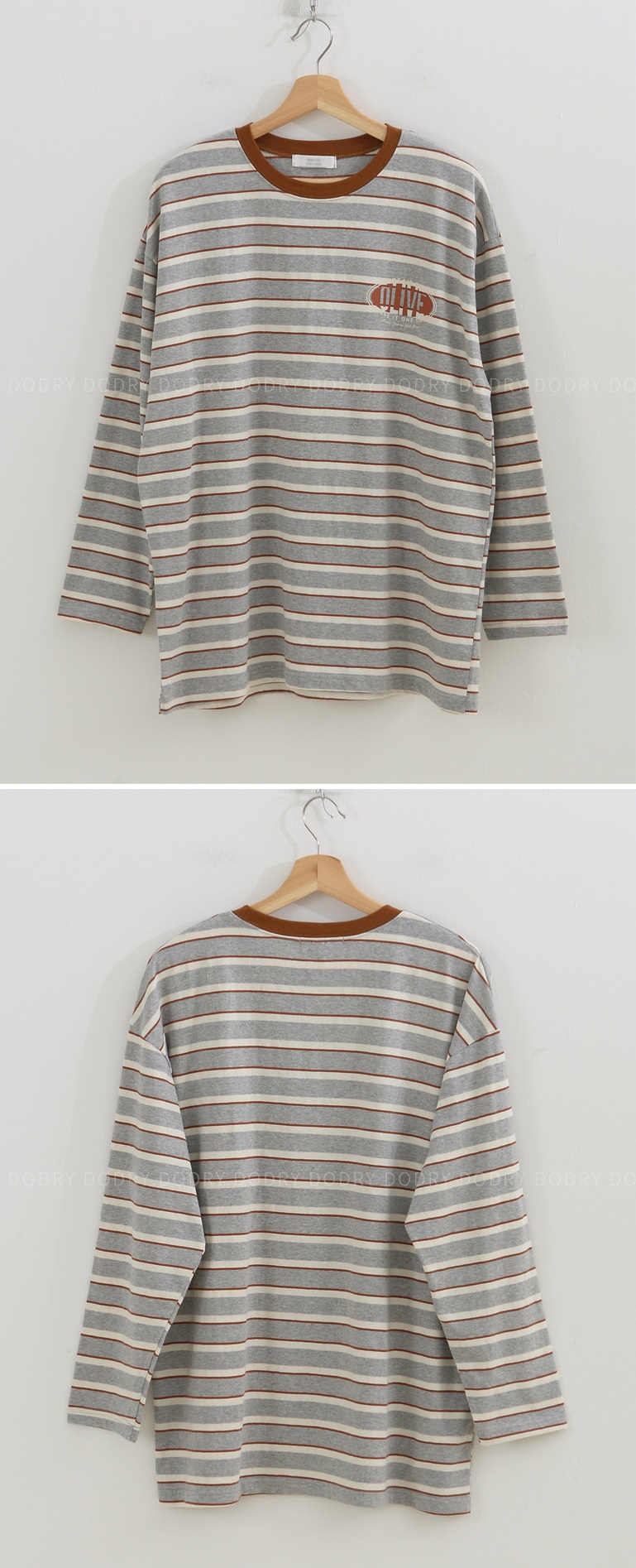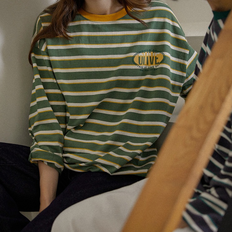 Forever Kids 正韓 字母點綴 配色條紋寬鬆長版T 上衣【A60378】韓國代購 | Foreverkids 韓國時尚精品、韓國代購、正韓空運、洋裝、吊帶褲、外套、針織外套、寬褲