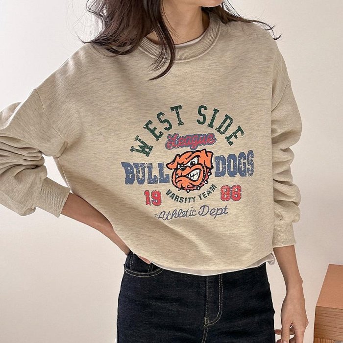 Forever Kids 正韓 休閒印花螺紋下擺 上衣T【V63385】】韓國代購 | Foreverkids 韓國時尚精品、韓國代購、正韓空運、洋裝、吊帶褲、外套、針織外套、寬褲