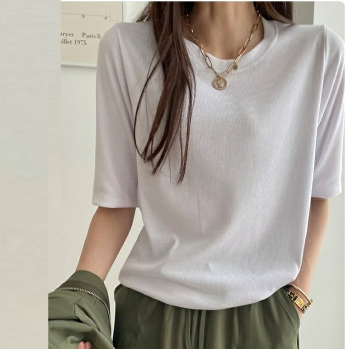 Forever Kids 正韓 很好的彈性 百搭螺紋五分袖T 大尺碼也可上衣【B62131】韓國代購 | Foreverkids 韓國時尚精品、韓國代購、正韓空運、洋裝、吊帶褲、外套、針織外套、寬褲