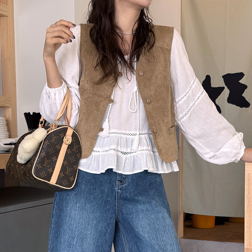 Forever Kids 正韓 柔軟絨面 短款廓形背心【S62132】 | Foreverkids 韓國時尚精品、韓國代購、正韓空運、洋裝、吊帶褲、外套、針織外套、寬褲