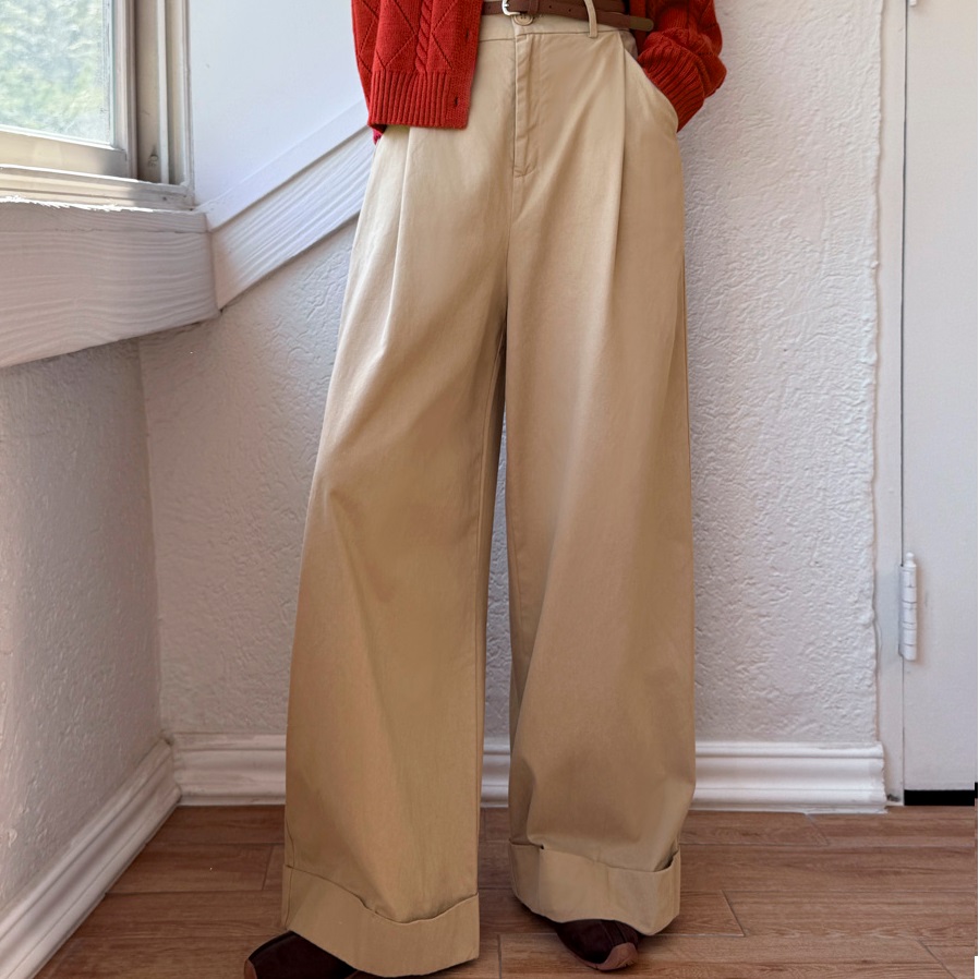 Forever Kids 正韓 高腰顯腿長挺棉 後鬆緊腰休閒寬褲【S62136】 | Foreverkids 韓國時尚精品、韓國代購、正韓空運、洋裝、吊帶褲、外套、針織外套、寬褲