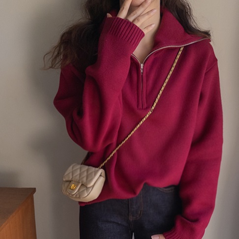 Forever Kids 正韓 休閒半拉鍊水手領針織上衣【B62142】 | Foreverkids 韓國時尚精品、韓國代購、正韓空運、洋裝、吊帶褲、外套、針織外套、寬褲