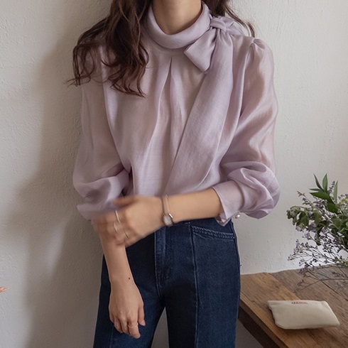 首頁 > 全部商品 > Forever Kids 正韓 浪漫天絲 蝴蝶結領帶珍珠絲質襯衫【A62149】