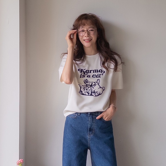 Forever Kids 正韓 柔軟親膚小貓咪短T【B62147】 | Foreverkids 韓國時尚精品、韓國代購、正韓空運、洋裝、吊帶褲、外套、針織外套、寬褲