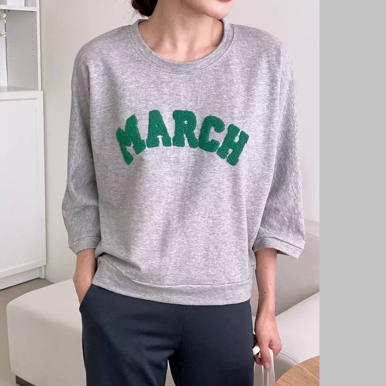 Forever Kids 正韓 可愛 毛絨字母無肩線八分袖T上衣純棉【F62142】韓國代購 | Foreverkids 韓國時尚精品、韓國代購、正韓空運、洋裝、吊帶褲、外套、針織外套、寬褲