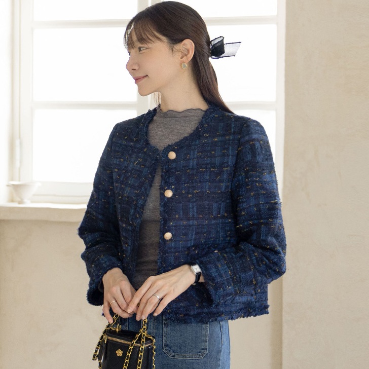 Forever Kids 正韓 魅力經典 金扣 圓領花呢夾克外套【F62145】韓國代購 | Foreverkids 韓國時尚精品、韓國代購、正韓空運、洋裝、吊帶褲、外套、針織外套、寬褲