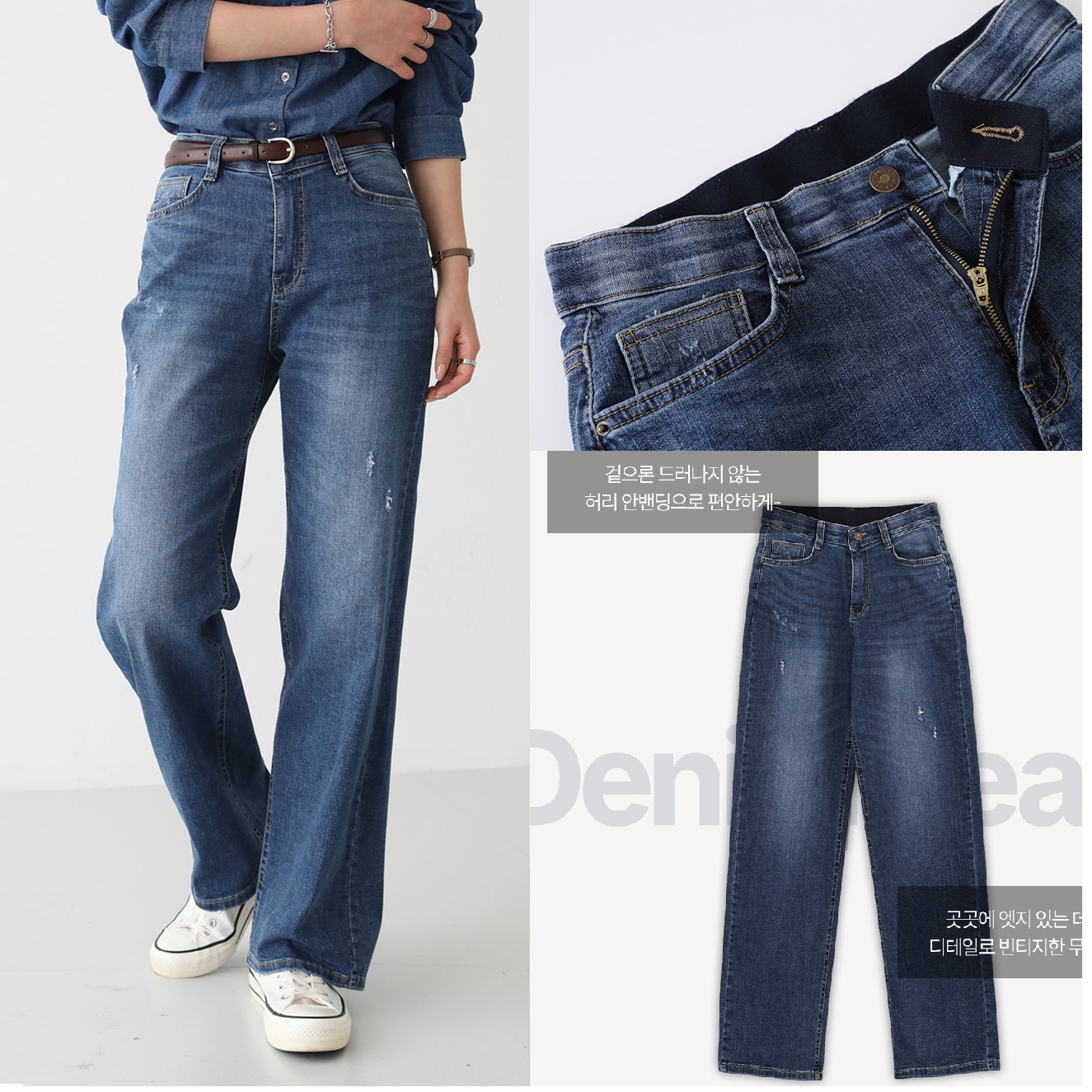 Forever Kids 正韓 自然貓鬚S~XXXL號刷色 隱藏式鬆緊腰寬鬆直筒牛仔褲【A62152】韓國代購 | Foreverkids 韓國時尚精品、韓國代購、正韓空運、洋裝、吊帶褲、外套、針織外套、寬褲