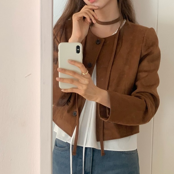 Forever Kids 正韓 質感有型 麂皮圓領排扣外套 夾克【A62181】韓國代購 | Foreverkids 韓國時尚精品、韓國代購、正韓空運、洋裝、吊帶褲、外套、針織外套、寬褲