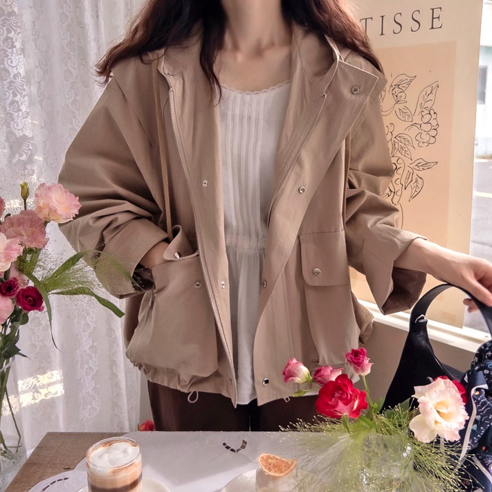 Foever Kids 正韓 經典可愛連帽風衣外套 口袋質感下抽繩【A62183】韓國代購 | Foreverkids 韓國時尚精品、韓國代購、正韓空運、洋裝、吊帶褲、外套、針織外套、寬褲