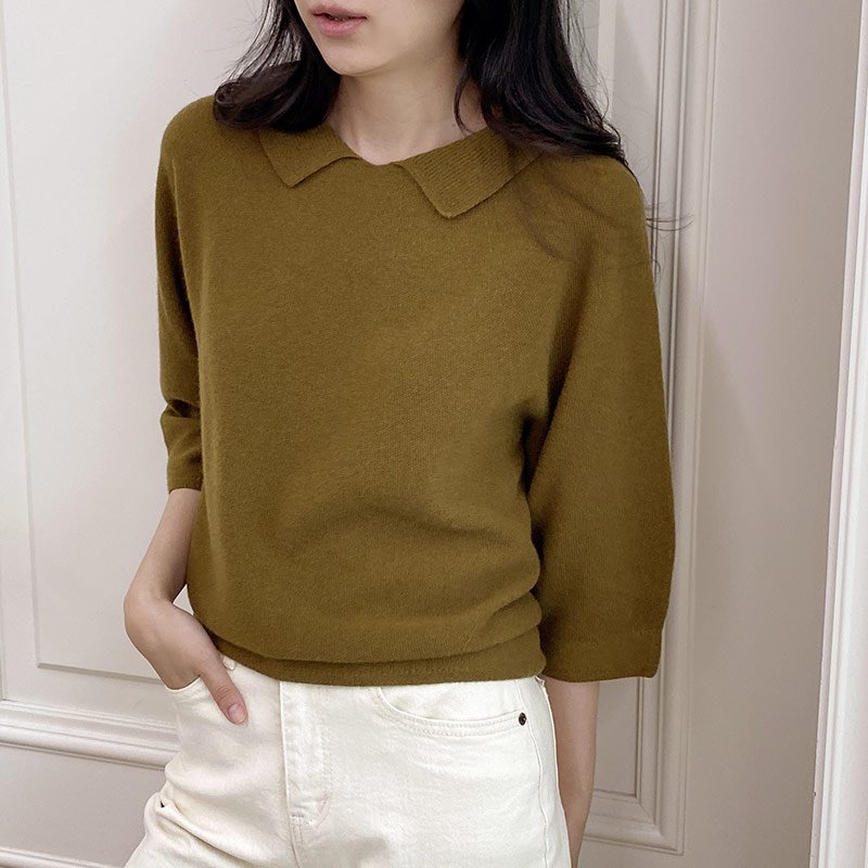 Foever Kids 正韓 好質感簡約一體成型喀什米爾翻領針織衫 【A62192】韓國代購 | Foreverkids 韓國時尚精品、韓國代購、正韓空運、洋裝、吊帶褲、外套、針織外套、寬褲