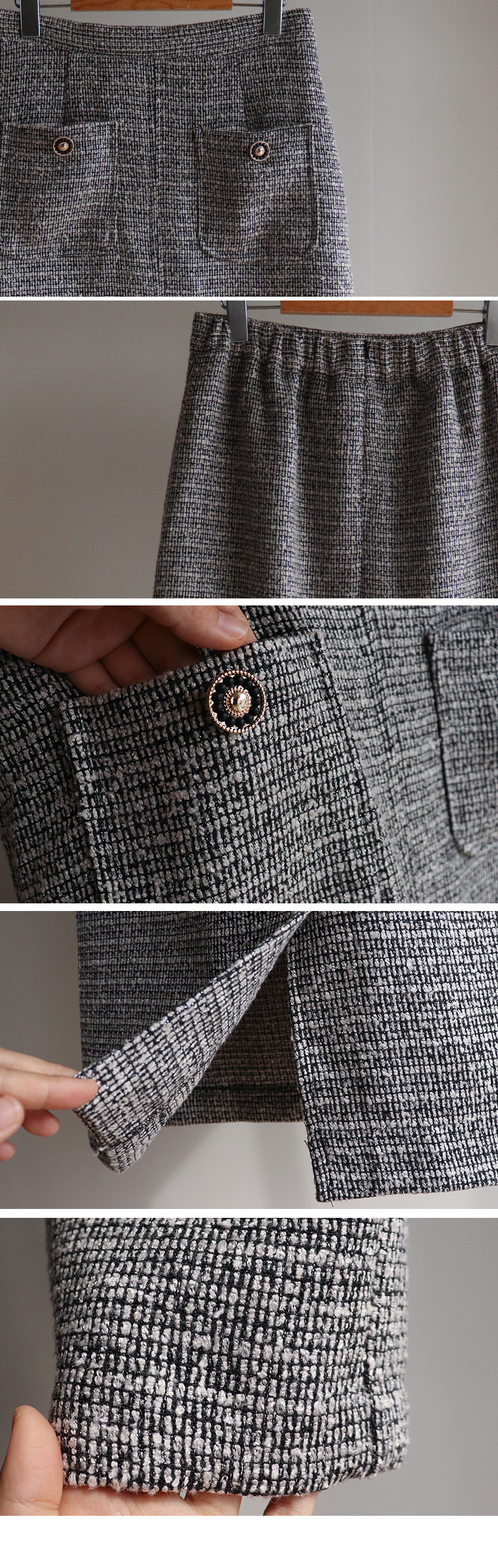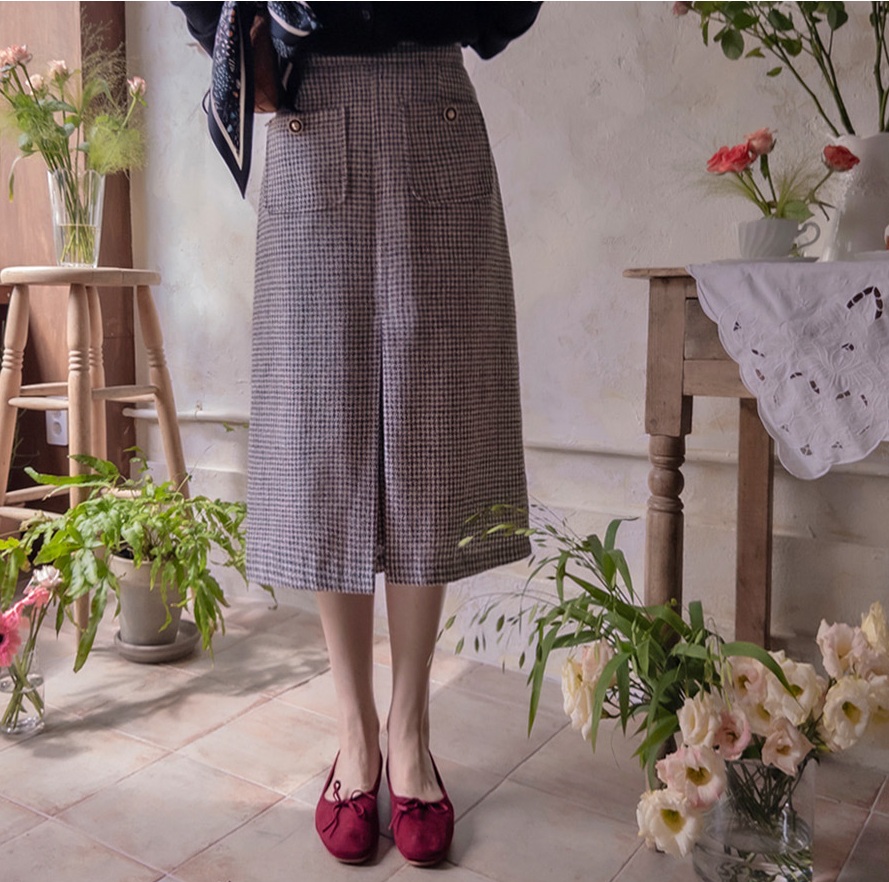 Forever Kids 正韓 雙口袋 下擺開岔格紋花呢 長裙【A621246】韓國代購 | Foreverkids 韓國時尚精品、韓國代購、正韓空運、洋裝、吊帶褲、外套、針織外套、寬褲