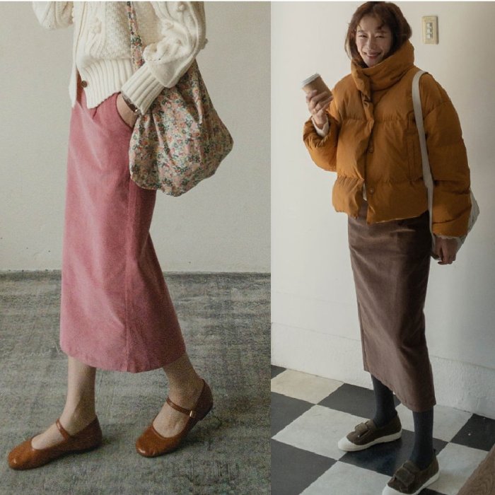 Forever Kids 現貨 正韓 後鬆緊腰H線條燈芯絨 糖果色長裙【A321410】韓國代購 | Foreverkids 韓國時尚精品、韓國代購、正韓空運、洋裝、吊帶褲、外套、針織外套、寬褲