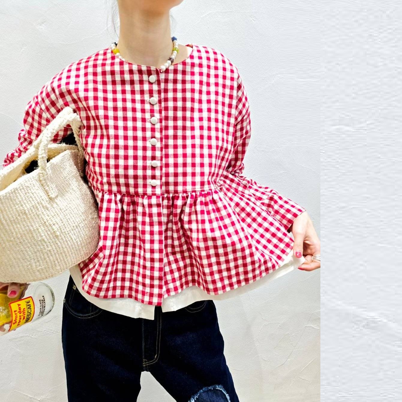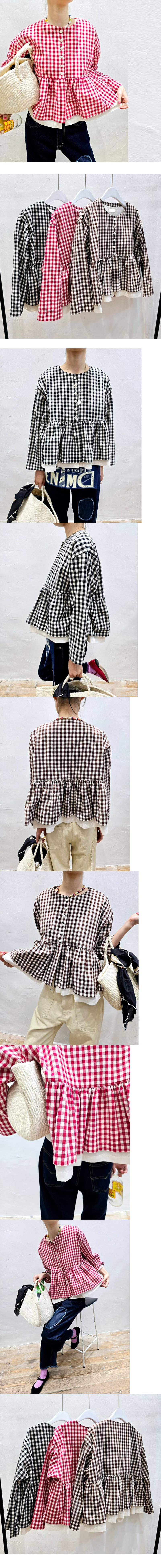 Forever Kids 正韓 可愛拼接層次下擺格紋 開扣娃娃衫襯衫【A621261】韓國代購 | Foreverkids 韓國時尚精品、韓國代購、正韓空運、洋裝、吊帶褲、外套、針織外套、寬褲