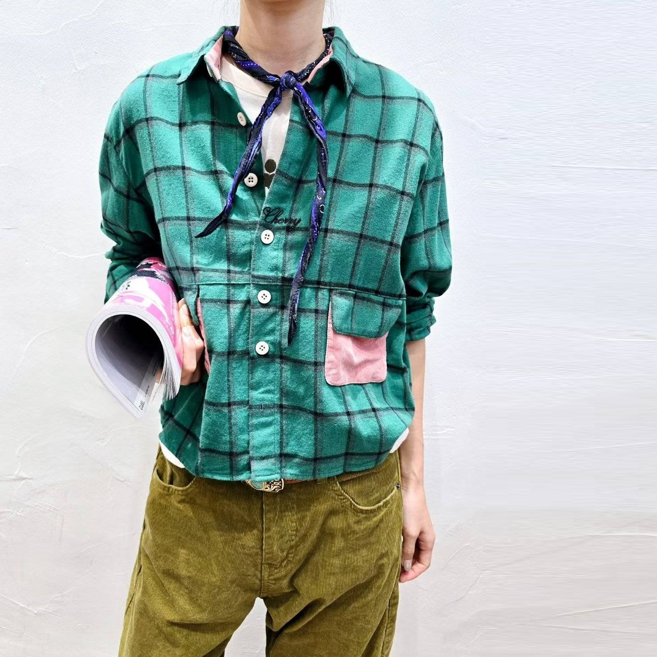 Forever Kids 正韓 可愛配色口袋 格紋襯衫外【A621265】韓國代購