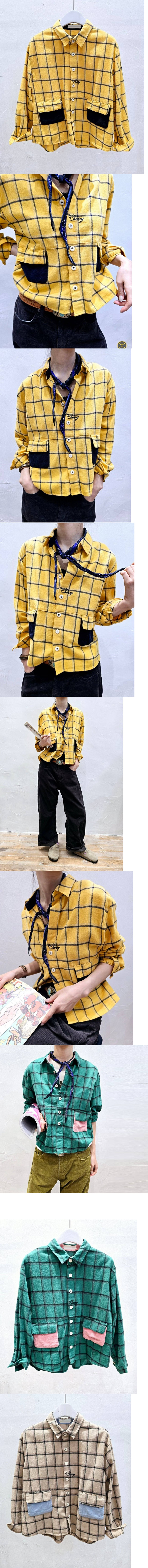 Forever Kids 正韓 可愛配色口袋 格紋襯衫外【A621265】韓國代購 | Foreverkids 韓國時尚精品、韓國代購、正韓空運、洋裝、吊帶褲、外套、針織外套、寬褲