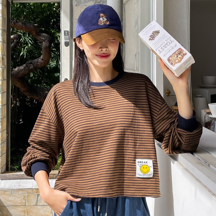 Forever Kids 正韓 休閒條紋微笑半短 寬鬆T上衣【B62191】 | Foreverkids 韓國時尚精品、韓國代購、正韓空運、洋裝、吊帶褲、外套、針織外套、寬褲