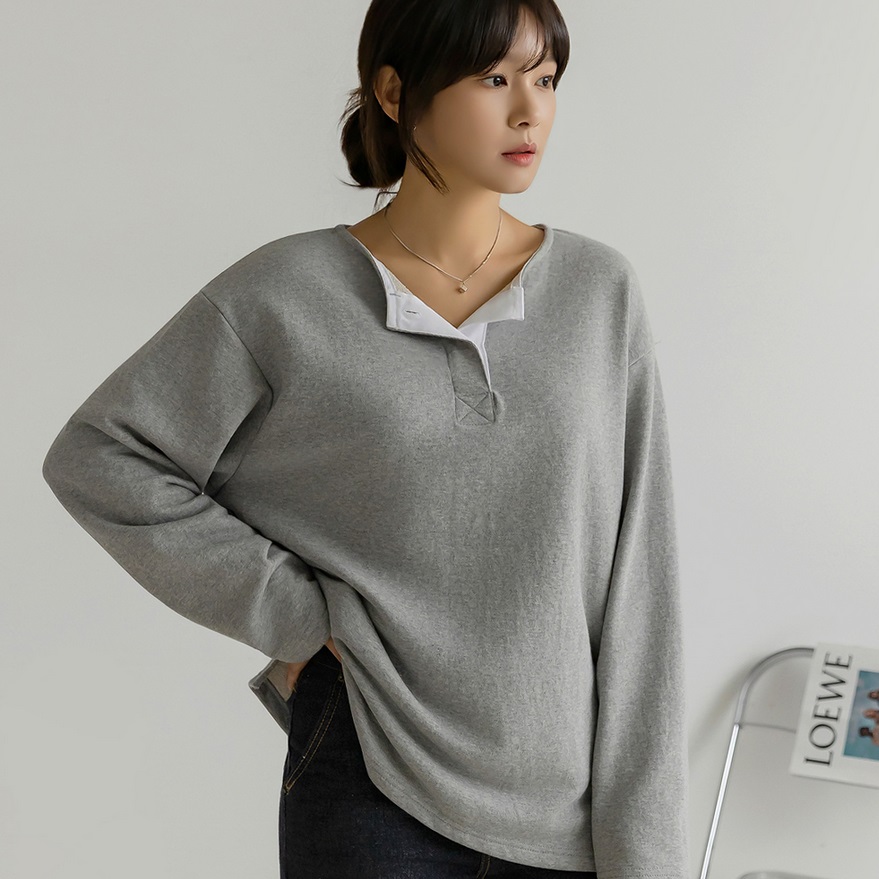 Forever Kids 正韓 亨利領口配色寬鬆長版T上衣【B62192】 | Foreverkids 韓國時尚精品、韓國代購、正韓空運、洋裝、吊帶褲、外套、針織外套、寬褲