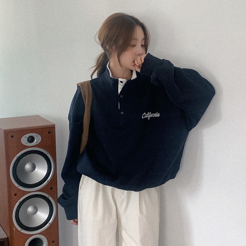 Forever Kids 正韓 立領休閒率性寬鬆落肩配色領 上衣【B62195】 | Foreverkids 韓國時尚精品、韓國代購、正韓空運、洋裝、吊帶褲、外套、針織外套、寬褲