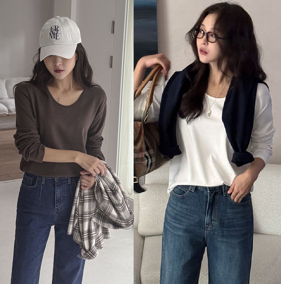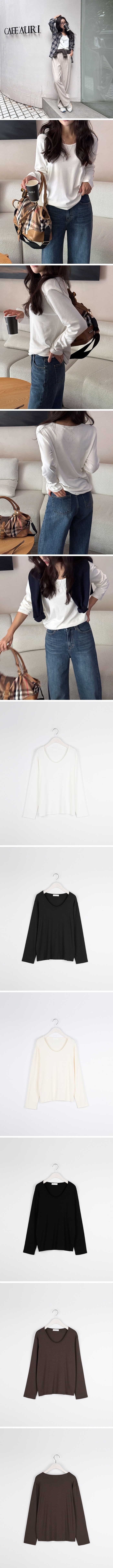Forever Kids 正韓 推薦!!韓國熱銷U領長袖棉質上衣素面T【E621261】韓國代購 | Foreverkids 韓國時尚精品、韓國代購、正韓空運、洋裝、吊帶褲、外套、針織外套、寬褲
