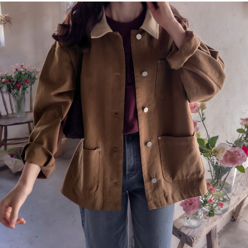 Forever Kids 正韓 燈芯絨領大口袋長版夾克外套上衣 【E621262】韓國代購 | Foreverkids 韓國時尚精品、韓國代購、正韓空運、洋裝、吊帶褲、外套、針織外套、寬褲