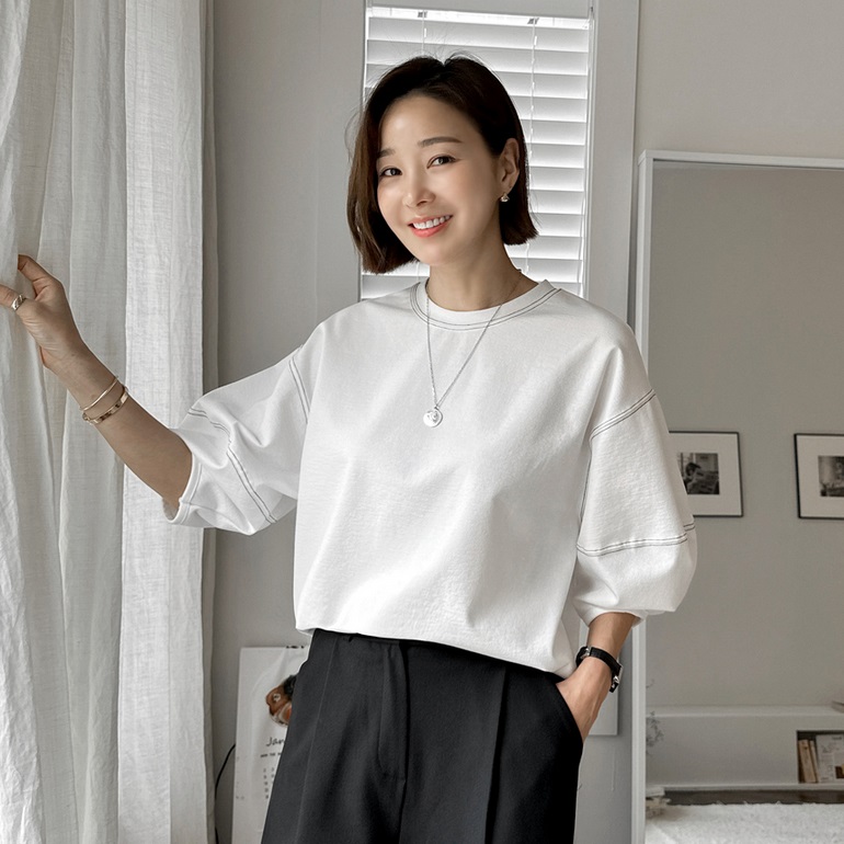 Forever Kids 正韓 縫線小拋袖八分袖上衣T【A621273】 | Foreverkids 韓國時尚精品、韓國代購、正韓空運、洋裝、吊帶褲、外套、針織外套、寬褲