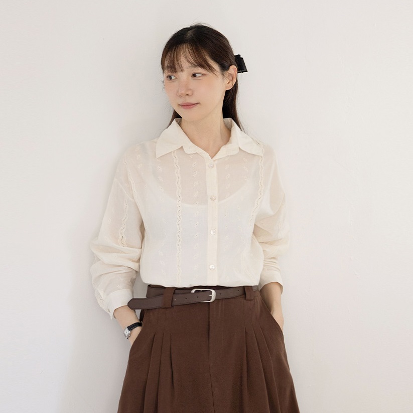 Forever Kids 正韓 花卉刺繡寬鬆棉質襯衫【C621279】 | Foreverkids 韓國時尚精品、韓國代購、正韓空運、洋裝、吊帶褲、外套、針織外套、寬褲