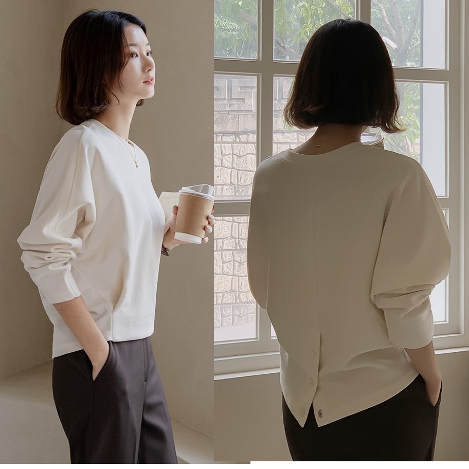 Forever Kids 正韓好版型 背扣下擺扣圓領上衣【YW62135】韓國代購 | Foreverkids 韓國時尚精品、韓國代購、正韓空運、洋裝、吊帶褲、外套、針織外套、寬褲