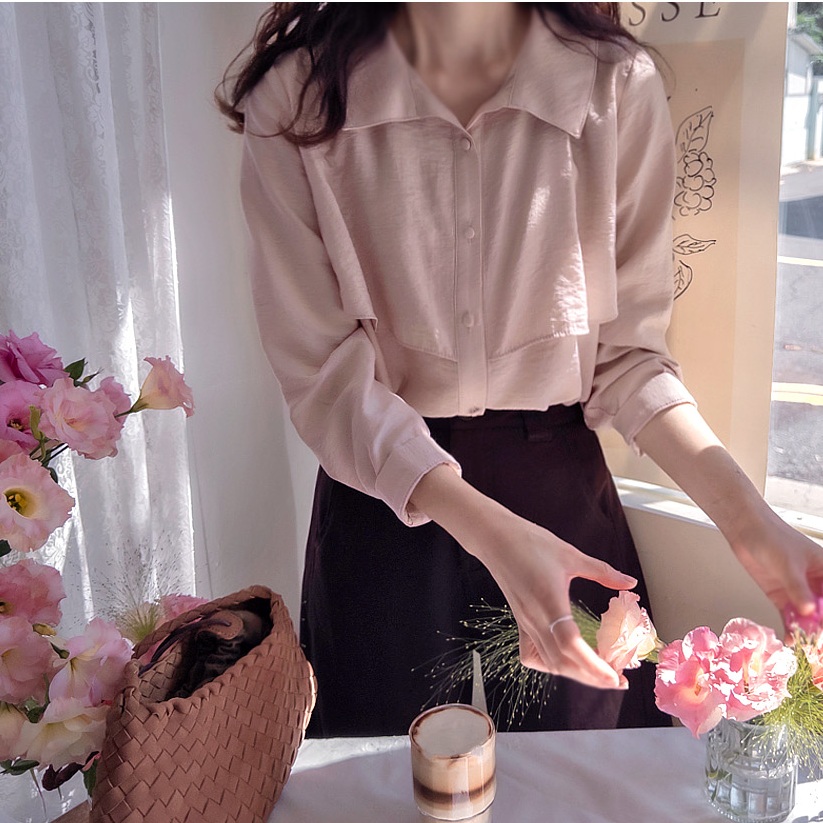 Forever Kids 正韓 柔軟的絲綢質感垂墜襯衫【B621320】韓國代購 | Foreverkids 韓國時尚精品、韓國代購、正韓空運、洋裝、吊帶褲、外套、針織外套、寬褲