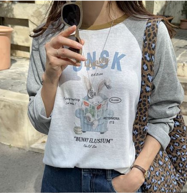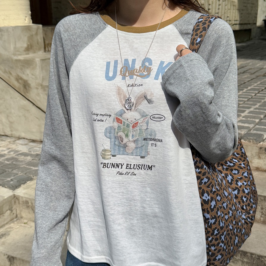 Forever Kids 正韓 好可愛配色領兔子印花T上衣【A621321】 | Foreverkids 韓國時尚精品、韓國代購、正韓空運、洋裝、吊帶褲、外套、針織外套、寬褲