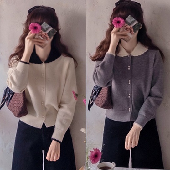 Forever Kids 正韓 配色波浪領可愛圓扣 針織外套上衣【B621323】韓國代購 | Foreverkids 韓國時尚精品、韓國代購、正韓空運、洋裝、吊帶褲、外套、針織外套、寬褲