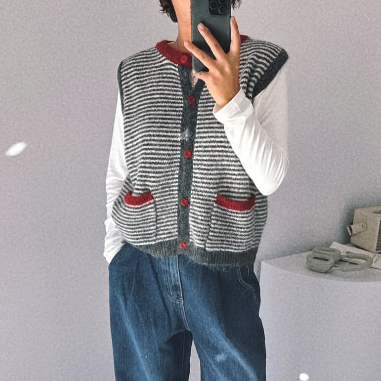 Forever Kids 正韓 可愛配色條紋針織口袋背心【A621326】 | Foreverkids 韓國時尚精品、韓國代購、正韓空運、洋裝、吊帶褲、外套、針織外套、寬褲