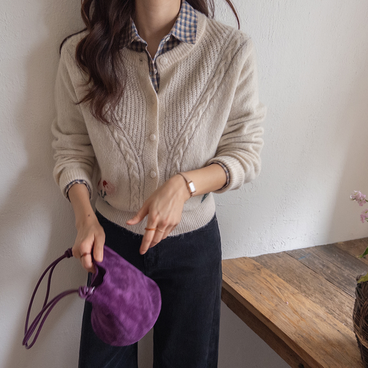 Forever Kids 正韓 玫瑰刺繡馬海毛 V字型羅紋編織開襟衫【B621325】韓國代購 | Foreverkids 韓國時尚精品、韓國代購、正韓空運、洋裝、吊帶褲、外套、針織外套、寬褲