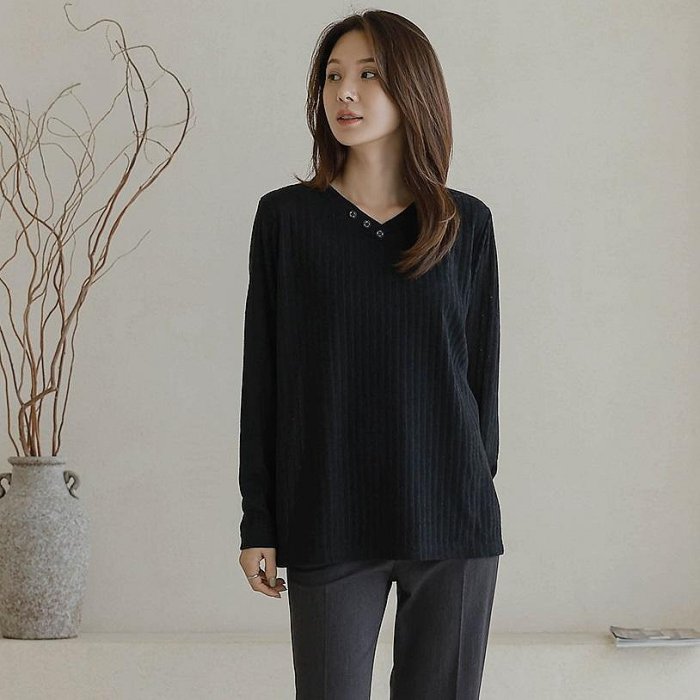 首頁 > 全部商品 > Forever Kids 正韓 V領鈕扣彈性針織螺紋上衣 寬鬆長版【A522378】韓國代購