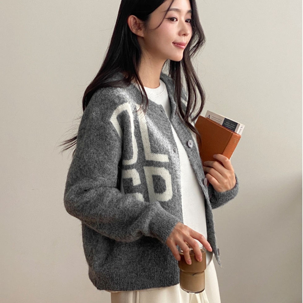 Forever Kids 正韓 大字母設計蓬鬆針織外套【B621339】 | Foreverkids 韓國時尚精品、韓國代購、正韓空運、洋裝、吊帶褲、外套、針織外套、寬褲