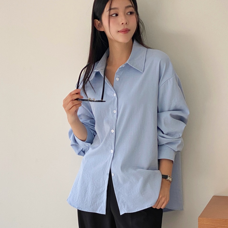 Forever Kids 正韓 背刺繡純色 寬鬆襯衫【A621338】 | Foreverkids 韓國時尚精品、韓國代購、正韓空運、洋裝、吊帶褲、外套、針織外套、寬褲
