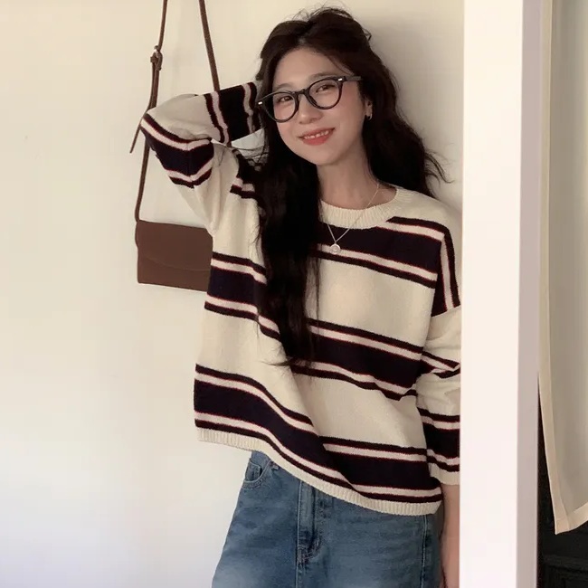 Forever Kids 正韓 喜歡!好版型配色條紋針織上衣【C621339】韓國代購 | Foreverkids 韓國時尚精品、韓國代購、正韓空運、洋裝、吊帶褲、外套、針織外套、寬褲