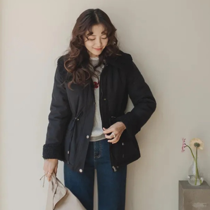 Forever Kids 正韓 質感抽繩腰身 毛絨內裡外套【A621381】韓國代購 | Foreverkids 韓國時尚精品、韓國代購、正韓空運、洋裝、吊帶褲、外套、針織外套、寬褲