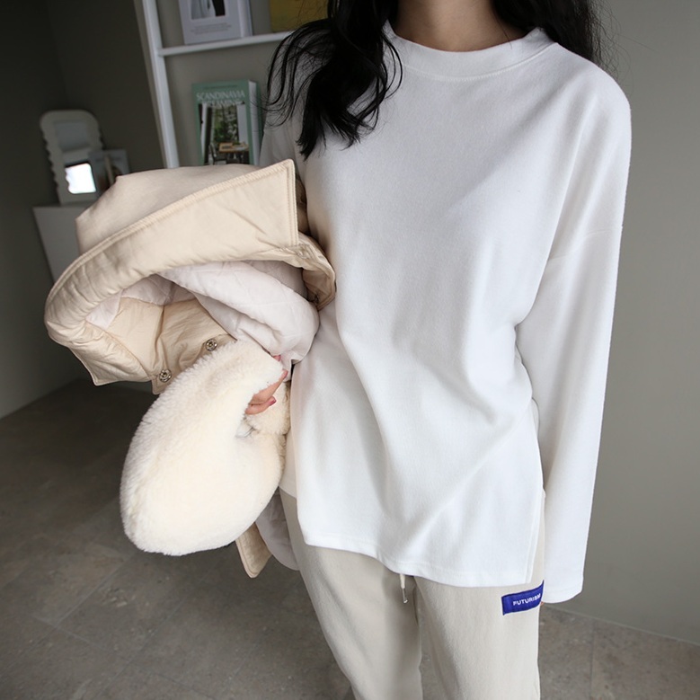Forever Kids 正韓 簡約寬鬆磨毛長版彈性T上衣【C21425】韓國代購 | Foreverkids 韓國時尚精品、韓國代購、正韓空運、洋裝、吊帶褲、外套、針織外套、寬褲
