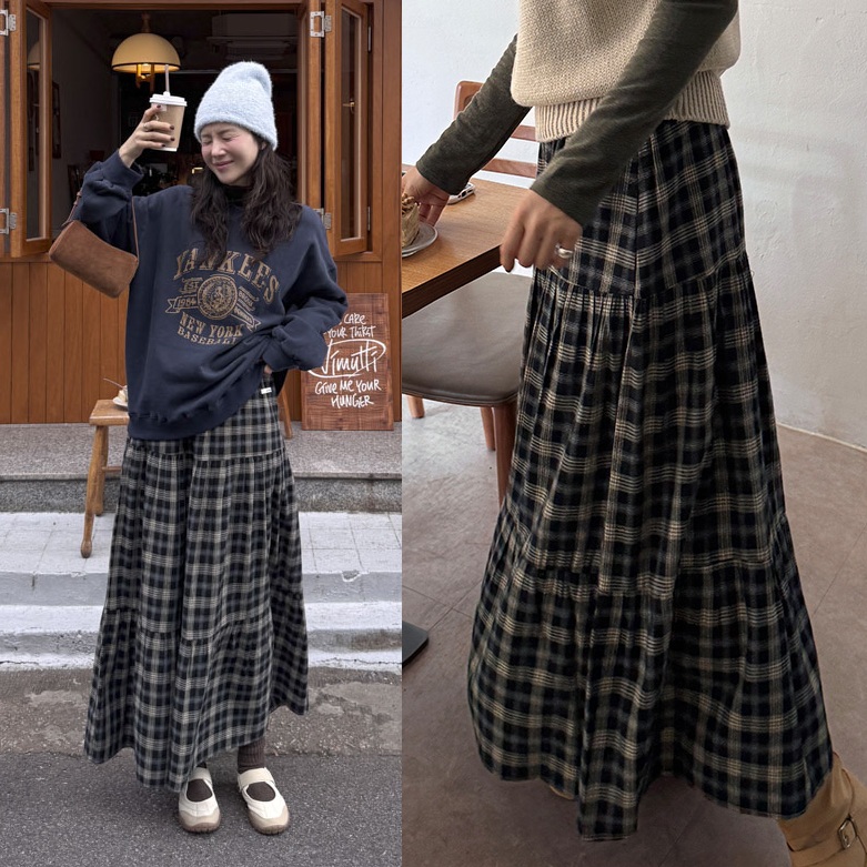 Forever Kids 正韓 格紋蛋糕長裙【B622501】韓國代購 | Foreverkids 韓國時尚精品、韓國代購、正韓空運、洋裝、吊帶褲、外套、針織外套、寬褲