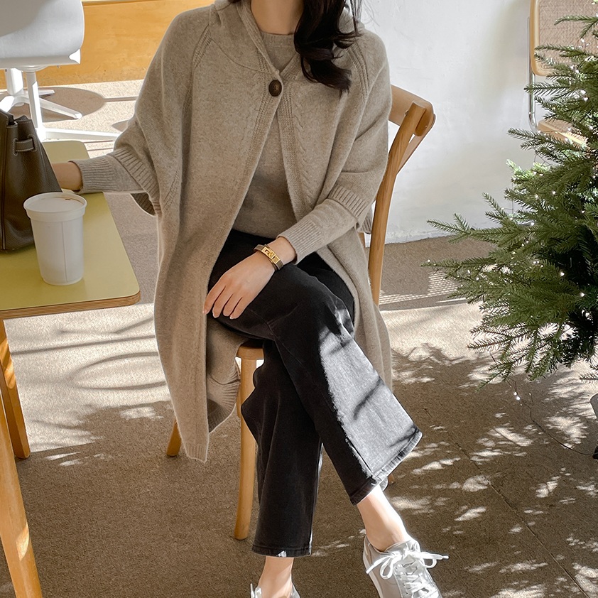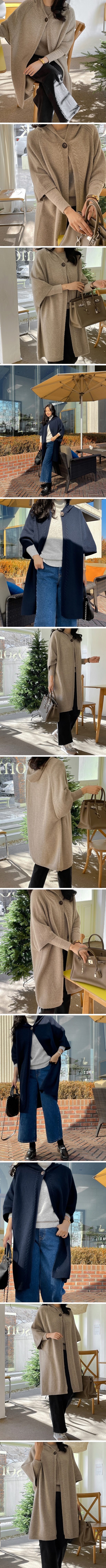 Forever Kids 正韓 單扣設計感 斗篷連帽五分袖針織大衣外套【C62267】韓國代購 | Foreverkids 韓國時尚精品、韓國代購、正韓空運、洋裝、吊帶褲、外套、針織外套、寬褲