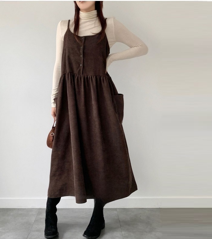 Forever Kids 正韓 吊帶燈芯絨口袋 連身裙 長洋裝背心裙寬鬆版【H622210】韓國代購 | Foreverkids 韓國時尚精品、韓國代購、正韓空運、洋裝、吊帶褲、外套、針織外套、寬褲