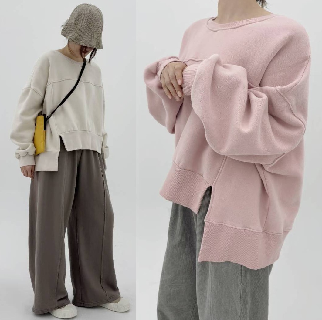 首頁 > 全部商品 > 正韓 挺棉有厚度 下擺開岔不規則刷毛T上衣【A622206】韓國代購