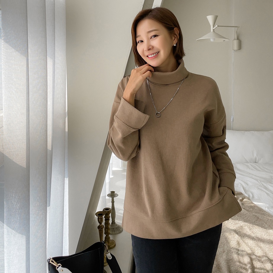 正韓 推薦~保暖立領柔軟下擺側開岔T上衣【C62206】 | Foreverkids 韓國時尚精品、韓國代購、正韓空運、洋裝、吊帶褲、外套、針織外套、寬褲